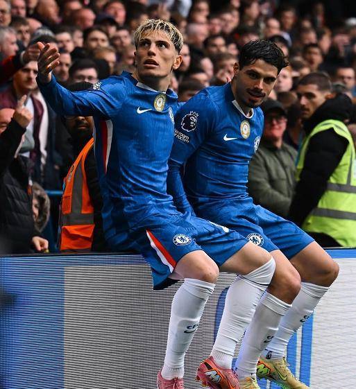 比赛开打之后,升班马桑德兰在客场完全不惧切尔西,直接拉开架势和蓝军对攻,不过第1分钟,今夏登陆斯坦福桥的加纳乔,就帮助主队取得了梦幻般的开局,左路带球杀入禁区,踩单车晃开防守球员后,一脚低射攻破了桑德兰的大门,帮助切尔西取得了1-0的领先,打进加盟蓝军首球的加纳乔,随后也坐在广告牌上庆祝,致敬了自己的偶像C罗。